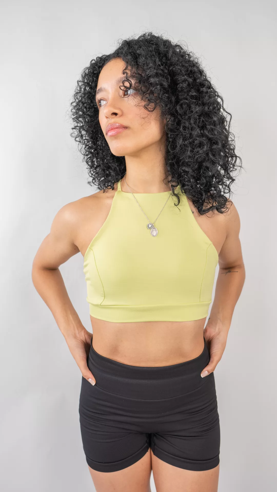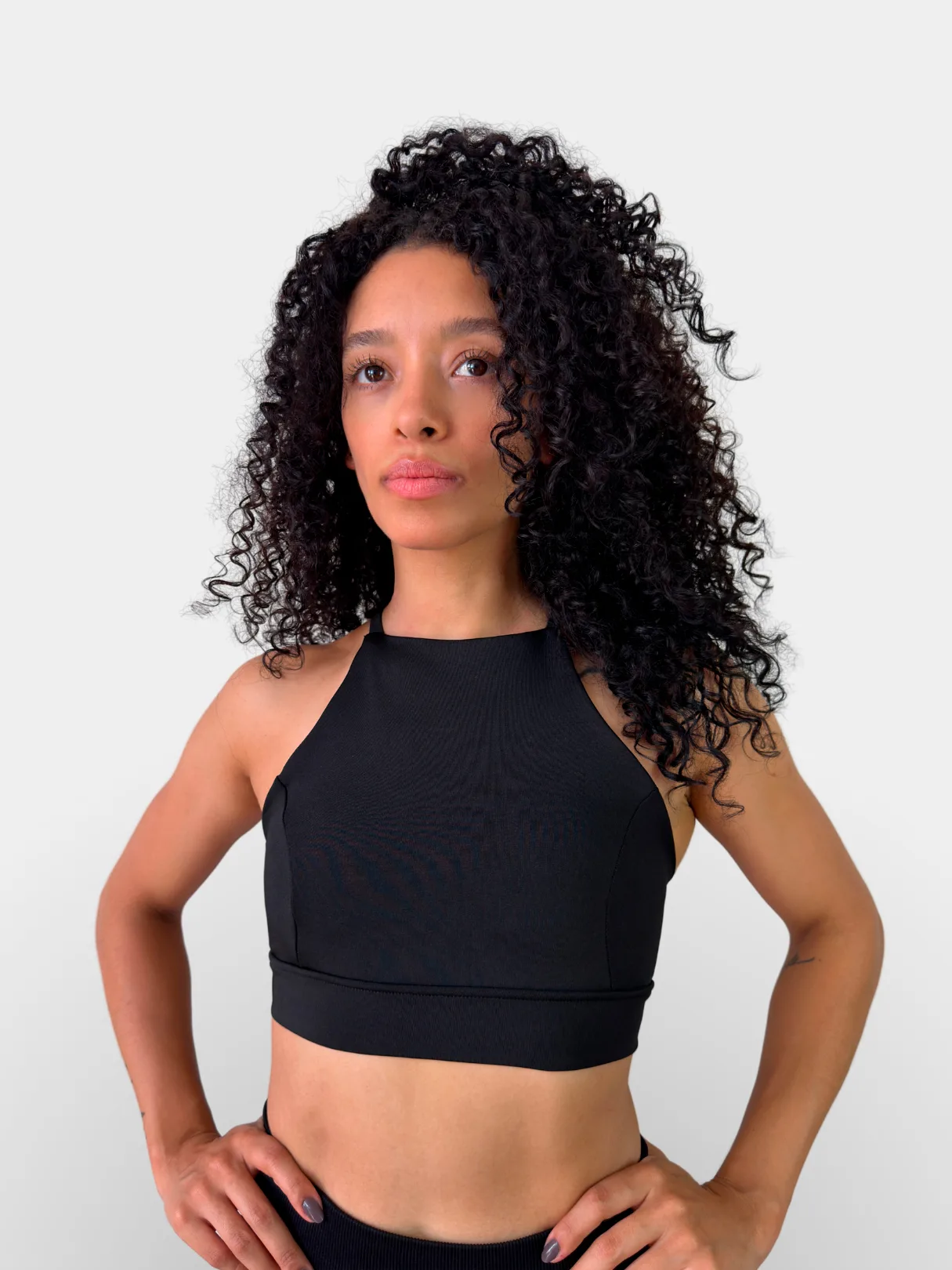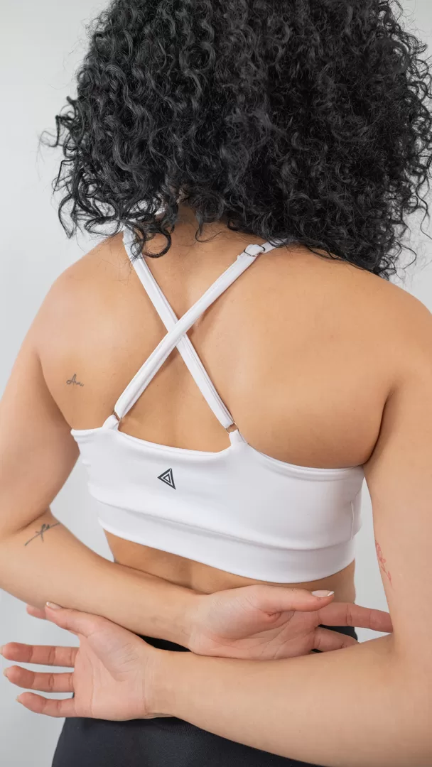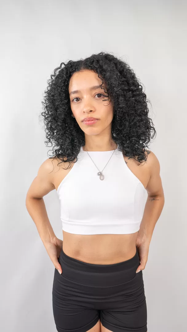 El Top Glitch es el equilibrio perfecto entre estilo y soporte. Con un ajuste al cuello y un diseño cruzado en la espalda, ofrece una mayor libertad de movimiento. En el frente, es de una sola pieza y cubre hasta medio abdomen, brindando soporte y un toque de sofisticación.